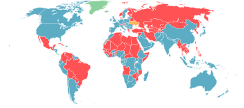 Wikipedia「徴兵制度」のページより「徴兵制度の世界地図」(赤:徴兵制、青:志願制) ・徴兵制廃止国(法的に存続していても、実際の運用を停止している国も含む) 日本、中国、ミャンマー、カンボジア、インドネシア、 アメリカ、カナダ、 チリ、アルゼンチン、ペルー、 オーストラリア、ニュージーランド、 インド、パキスタン、アフガニスタン、イラク、サウジアラビア、 イギリス、フランス、ドイツ、イタリア、スペイン、ポルトガル、オランダ、ベルギー、 アイスランド、スウェーデン ・徴兵制存続国 メキシコ、ブラジル、韓国、北朝鮮、台湾、シンガポール、マレーシア、タイ、ベトナム、ロシア、 イラン、トルコ、エジプト、オーストリア、スイス、フィンランド、ノルウェー、デンマーク、イスラエル ※ただし、一言で「徴兵制」と言っても、色々な形態(期間、徴兵率、性別、週末だけ通って訓練を受ける、良心的兵役拒否の可否など)があり、徴兵制存続国の間でも、相当に差異がある。一例を挙げると、メキシコの徴兵制は週末だけ軍の基地に通って訓練を受けるだけのものである。また、ブラジルの徴兵制は免除規定が数多く存在しており、逃れたい人はいくらでも回避可能。それに対し、イスラエルは女子にも兵役義務を課している。また、韓国や北朝鮮、イラン、シンガポール、トルコ、エジプトは良心的兵役拒否を合法化していない。ロシアは大学で軍事教練を受ければ兵役が免除となる(プーチンは大学での軍事教練で兵役を免除された)。マレーシアの徴兵制は男女ともに課せられるが、軍に入隊して実際に戦争や紛争に行かされるのではなく、国防省の管理下で6ヶ月間共同生活することで国民の一体感を強化する目的の制度で、マハティール元首相の提唱で導入されたものである。 ・良心的兵役拒否を一切合法的に認めておらず、免除規定も極めて厳しい国 韓国、北朝鮮、トルコ、イラン、エジプト、イスラエル、シンガポール、ベトナム